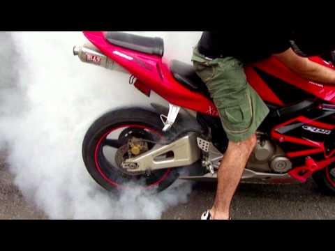 Pepino de moto quemando rueda, una Honda CBR 600.